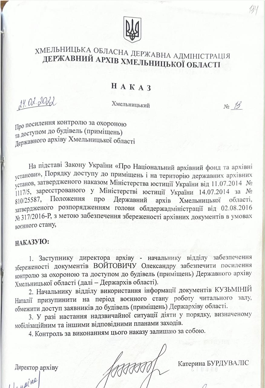 В умовах широкомасштабної збройної агресії російської федерації проти України архівні установи області послідовно реалізують державну політику у сфері ініціативного документування подій воєнного часу.